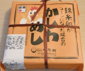 | 北部九州名物の「かしわめし」をベースにした駅弁で、これに鳥栖駅名物「しゅうまい(焼麦=しゃおまい)」 をプラスしたお弁当です。 九州駅弁の代表格「かしわめし」は、ここ鳥栖駅発祥と言われており、また「しゅうまい」も昔から鳥栖駅名物でした。 どちらも絶品で、これで700円とはうれしい駅弁です。 |